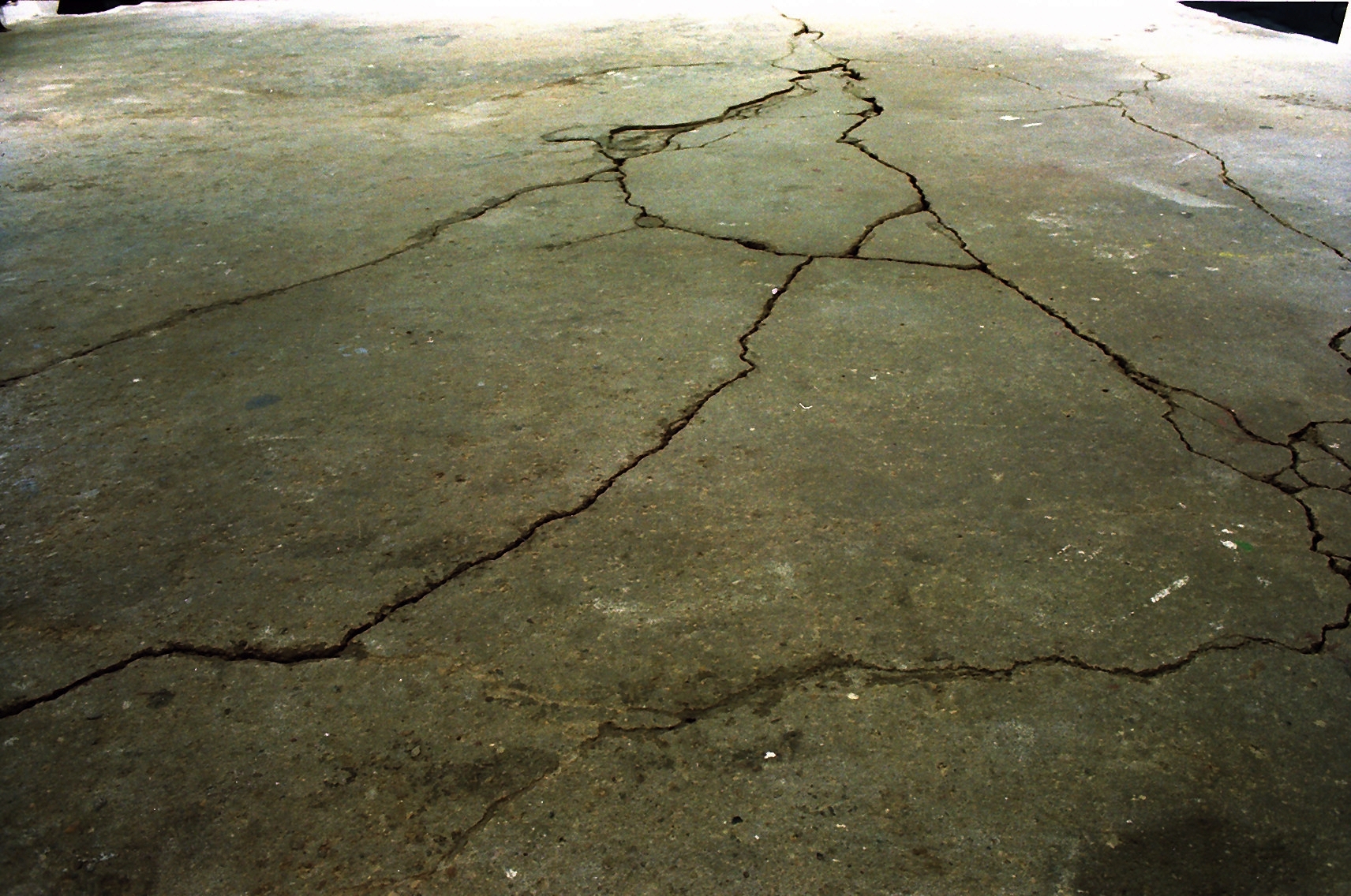 Der Betonfußboden meines Atelierraumes, in dem ich seit nunmehr 13 Jahren arbeite, hat eine Besonderheit: Fast in der Mitte, der Längsachse seines rechteckigen Grundrisses folgend, erstrecken sich teils klaffende, eher Spalten zu nennende, teils feinere Verästelungen von Rissen und Vertiefungen.